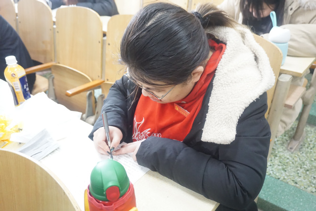 考试开始前,考生们陆续的来到考场并按照考号坐好,等待着监考老师发卷。部分考生还拿出复习讲义来进行翻看,进行考前冲刺。在监考老师讲完考试注意事项后,班级内佩戴“入党积极分子”徽章的考生率先将复习资料和关机后的手机置于书包中,将书包拿到讲台之上,其他考生们也纷纷将手机主动关机放于讲台之上。整场考试下来,入党积极分子们认真读题,严肃考纪,在考试结束铃声响起后方才交卷离开考场。