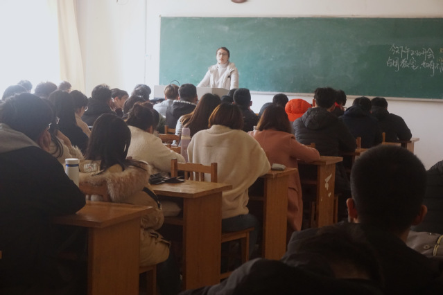 “确定人生道路,做好最佳准备”,在2016级学生班级会议中,张佳表示大三同学要将精力放在学习上,为就业和考研做准备。及时登录学校“网络教学平台”,仔细核查学分绩点,及时查缺补漏完成毕业事宜,保证顺利拿到毕业证和学位证。接着,她对学生未来的发展方向提出建议,并以自身的学习与工作经历及周身同学生活为例,逐个分析就业与考研的利弊。张佳用流利生动的语言为大三学生分析发展方向,提高个人素养,增加就业筹码;讲解各科考研复习要求,正确选择专业和学校。