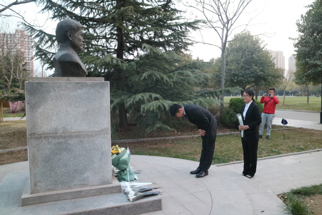随后,卢童老师及学生会全体骨干为英雄烈士献花,深切表达对冯思广烈士的无限追思。最后,全体人员跟随我校国防委国防知识讲解员参观我校国防教育主题基地,讲解员通过对抗日战争英雄、淄博市英雄和学校英雄人物的介绍讲解,让学生们对英雄烈士事迹有了更进一步的理解,激发了同学们对英雄烈士的崇敬之情和对祖国的热爱。