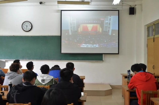 纪念五四运动100周年大会于4月30日上午10时30分在人民大会堂举行。中共中央总书记、国家主席、中央军委主席习近平出席大会并发表重要讲话。我院2016级学生及学生会主要学生干部80余人在12号教学楼103教室集中观看了大会直播,其它学生在宿舍通过手机或电脑自行观看了大会直播、转播