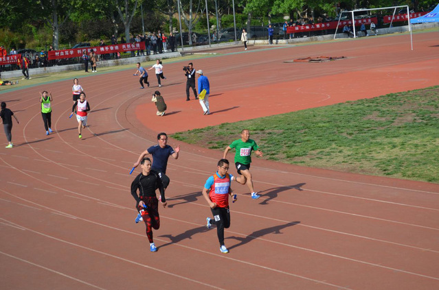 再苦再累也抵挡不住我院运动员们奔跑的脚步,汗水虽湿透衣服,却不曾放慢脚步,这源于他们的体育精神。在全校师生似火的热情中,我院不断传来佳绩。在全校教职工组比赛中,我院在教工不分年龄组男子四人踢毽子比赛中取得了第一名的好成绩,他们就像魔术师,将毽子踢出了新花样。通过四人出色的合作,诠释了我院教工们的团结精神;我院师生齐心协力,通过传递手上的接力棒,展现了师生之间的默契,在4*100米接力决赛中,获得第四名的好成绩。