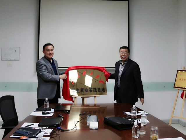 陈学星代表学校为学生就业实践基地揭牌,我院党总支副书记戴洁为俱乐部揭牌。随后学校一行参观了公司展厅及模具车间。