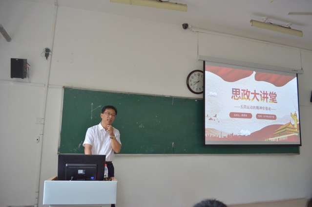 报告会上,韩德信从三个方面对五四运动的精神价值论进行阐述。首选,他指出五四运动的爆发不是一蹴而就的,是近代中国人民在救亡图存的道路上新探索、新起点,而五四精神是源于1915年的新文化运动,而作为新文化运动口号的“民主”“科学”肇基于洋务运动和戊戌变法。他用通俗的语言、耳目一新的观点解释五四精神的渊源。其次,他对五四精神核心内容“爱国、进步、民主、科学”中的“民主”和“科学”做了重点的释义。随着近代“西学东渐”和“师夷长技”等思想的发展,先进知识分子从学习西方器物到政治制度,从政治制度再到文化,“民主”和“科学”在近代社会中不断的演变和发展。最后,韩德信结合当下,阐述了科学与技术的关系,特别指出在一流学科学院,学院科研的深入将推动学院的向前发展,并强调了当下继承和发扬五四精神必要性和重要性。