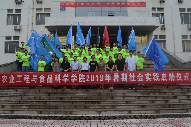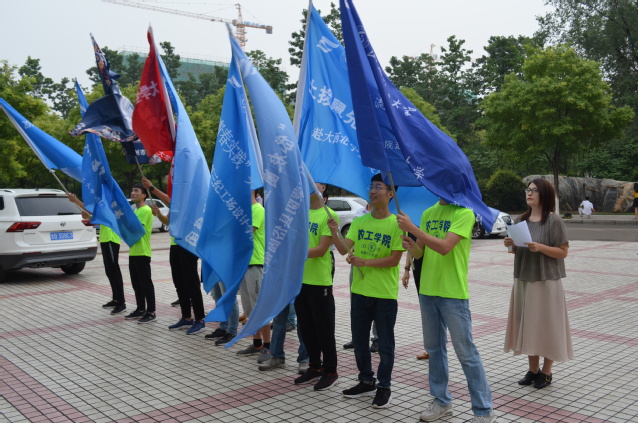 仪式开始,张佳首先向百忙中前来参加仪式的老师表示感谢,并向同学们介绍实践的意义、学院2019年暑期社会实践组队整体情况等,希望学生能在社会实践中积极表现、为校争光。接着,启动仪式进行第一项,在场老师向各暑期实践队伍代表授旗。同学们紧握住手中的旗帜挥舞,展现了农工学子出征前的良好精神风貌。随后,实践团队学生代表、我院学生会实践部部长李英杰发言,她提到当代青年大学生应在社会实践活动中不断提高自身综合素质,把个人追求同社会的需要紧密结合起来,用自己的实际行动传播正能量,为学校争光。房晓君叮嘱同学们在认真进行社会实践的同时一定要注意交通安全和人身安全,随时保持通信畅通,与指导老师保持沟通,发扬农工学院优秀传统,再创佳绩。