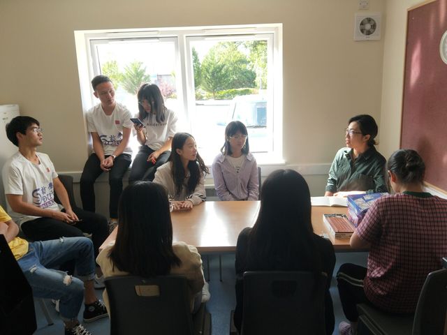 晚上,戴洁老师组织同学们召开每日例会。同学们普遍对“scavenger hunt”游戏感触颇多。游戏开始,每个团队各自为战,效率很低。当意识到团队合作的重要性时,各小组之间相互合作,分区域寻找目标使任务更加快速的完成,正像游戏最终拼出来的那句话一样“团队合作,实现梦想”。