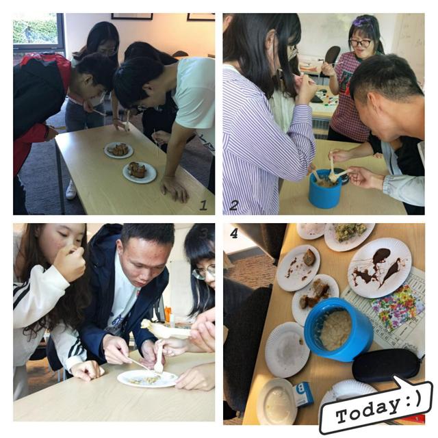 上午仍是有趣的英语课。Martin老师介绍了许多感官词汇,为了提高学习兴趣,Martin老师带来了八种当地独特的食物,让我们一一品尝。