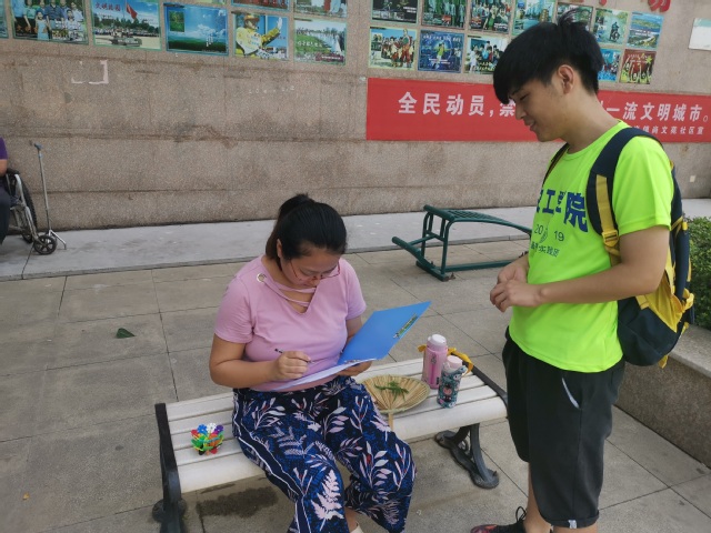 719日,“食安为先”社会实践团分为两组分别对居民、商户进行关于食品安全的调研活动。