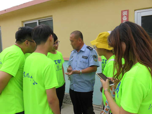 稽查中队的装配库储备着相当多的消防物资,如风力灭火机等。该地负责人表示,稽查中队采用24小时轮流值班制,目的就是减少森林火灾的发生并在火灾发生时及时抢救,保护我们的“绿水青山”。此外,为了应对不同的火灾类型,装配库中也有不同的设备,针对火被扑灭以后可能会产生余火的情况,稽查中队额外配备了细水雾灭火机等设备。在与稽查中队的队长李许政交谈中,志愿者们了解了这些装备的基本使用方法,近距离接触到森林防火防御工作。同时,他提到2014年3月14日发生在牙山的一场严重的森林火灾,大火延续近一周,自己四天五夜没有睡觉,在该地值了十二天班,投入到火灾的抢救部署工作中。