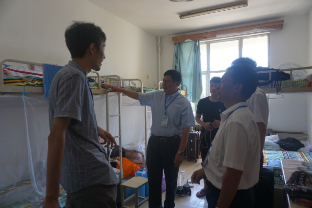 走访队伍到达另一个新生宿舍,看到一位新同学母亲在为其安置行李,戴洁建议到让新生独立安置,锻炼其生活自理能力,也为将来四年大学生活做准备。兰玉彬向新生询问是否对学院、对专业有所了解,他们表示开学前曾与新同学一起了解过我院,对我院近年来的科技研究也略有耳闻,对自己孩子在学院的学习很有信心。针对新生家长提出宿舍能否安装空调的问题,刘元义向新生家长介绍到,目前学校宿舍楼线路仍在改建中,明年有望宿舍统一安置空调,家长表示学校建设日益完善,对孩子的大学生活很放心。