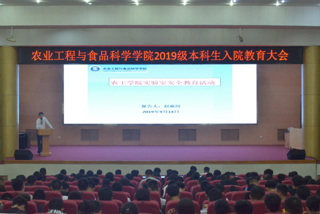 9月14日上午,我院于三号教学楼报告厅举行入院教育第五讲——《实验室安全教育》,邀请农业工程系老师牛国栋、食品科学系老师赵新河主讲,2019级全体新生参加。