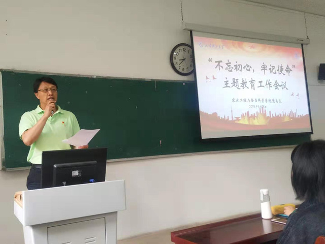随后,戴洁解读了《williamhill英国党总支“不忘初心、牢记使命”主题教育工作方案》,就主题教育的总要求、根本任务、具体目标、基本内容和推进措施进行详细说明,重点强调要突出抓好学院领导班子和领导干部主题教育,把抓实学习教育、深入调查研究、深刻检视问题、严格整改落实贯穿主题教育全过程,以学促研、以研促查、以查促改,要结合“我们都是追梦人”庆祝新中国成立70周年主题教育活动,做好“溯源”文章,传承农工精神,提升学习实效;要着力抓实基层党支部主题教育,重点做好“六个一”工作,开展好“党旗飘扬在公寓”、“一句话承诺”等党员活动,确保主题教育取得实效。