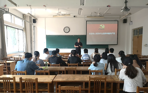 他说到,中国近代史是一段屈辱的历史,中国人民在不同阶级的领导下开展反帝反封建的斗争,但由于种种历史原因都没有完成中国近代史的主要任务。伴随着马列主义的在中国的广泛传播,诞生了一个伟大政党—中国共产党。他讲到,中国共产党带领中国人民,经过28年的艰苦斗争完成了新民主主义革命的胜利;在探索社会主义的过程中,逐步确立了社会主义基本制度。尤其是进行了改革开放新的伟大革命,极大解放和发展社会生产力,开辟了中国特色社会主义道路,实现了中国人民从站起来到富起来、强起来的伟大飞跃。