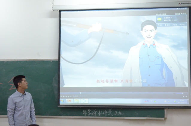许新港为吸引同学们的兴趣,播放央视的爱国宣传动漫《榜样》的主题曲《永恒》,动漫展现了那些为国家、为人民,牺牲、奉献的民族脊梁和时代先锋。最后,宣讲在同学们热烈的掌声中结束。