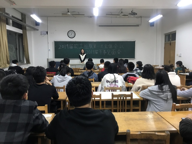 10月25日晚上7点,我院社团联合会于12号教学楼113号教室召开2019届农工社联第一次全体会议暨2019届干事见面会。