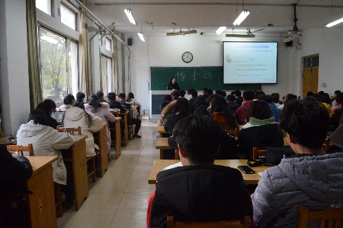 论坛伊始,她用风趣幽默的语言,以生活中的趣事作为开场,引起了同学们极大的兴趣;细致讲解了生物传感器的概述,列举出生物传感器的基本结构,并对生物传感器在食品安全检测中的研究和应用进行了详细地介绍,例如对生物毒素、抗生素、油品掺假、农药、重金属离子等的检测。老师用各式各样的图片,多种多样的应用实例,让同学们大开眼界。随后,她详细地介绍了自己的团队和导师王相友,强调了团队的作用,用众多的奖项和专利告诉同学们团队的力量是无限的。在论坛的结尾,她结合自己的经历与同学们分享个人心得、专业科研理念及未来发展趋势,敦促同学们利用大学时光,学好专业知识,积极参加集体活动丰富自己的课余生活,提高自己的实践技能。