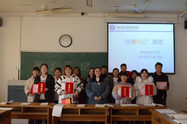 为鼓励学生树立良好学习习惯,促进学生间的学习交流,11月28日下午,我院于12号教学楼103号教室举行“拒做低头族,晒出我笔记—最美笔记”评选活动及活动颁奖仪式。此次活动由农工学院学生会学习部组织,活动面向我院全体学生,辅导员贾晶晶,孙永梅、李建勇及各位获奖同学参加。