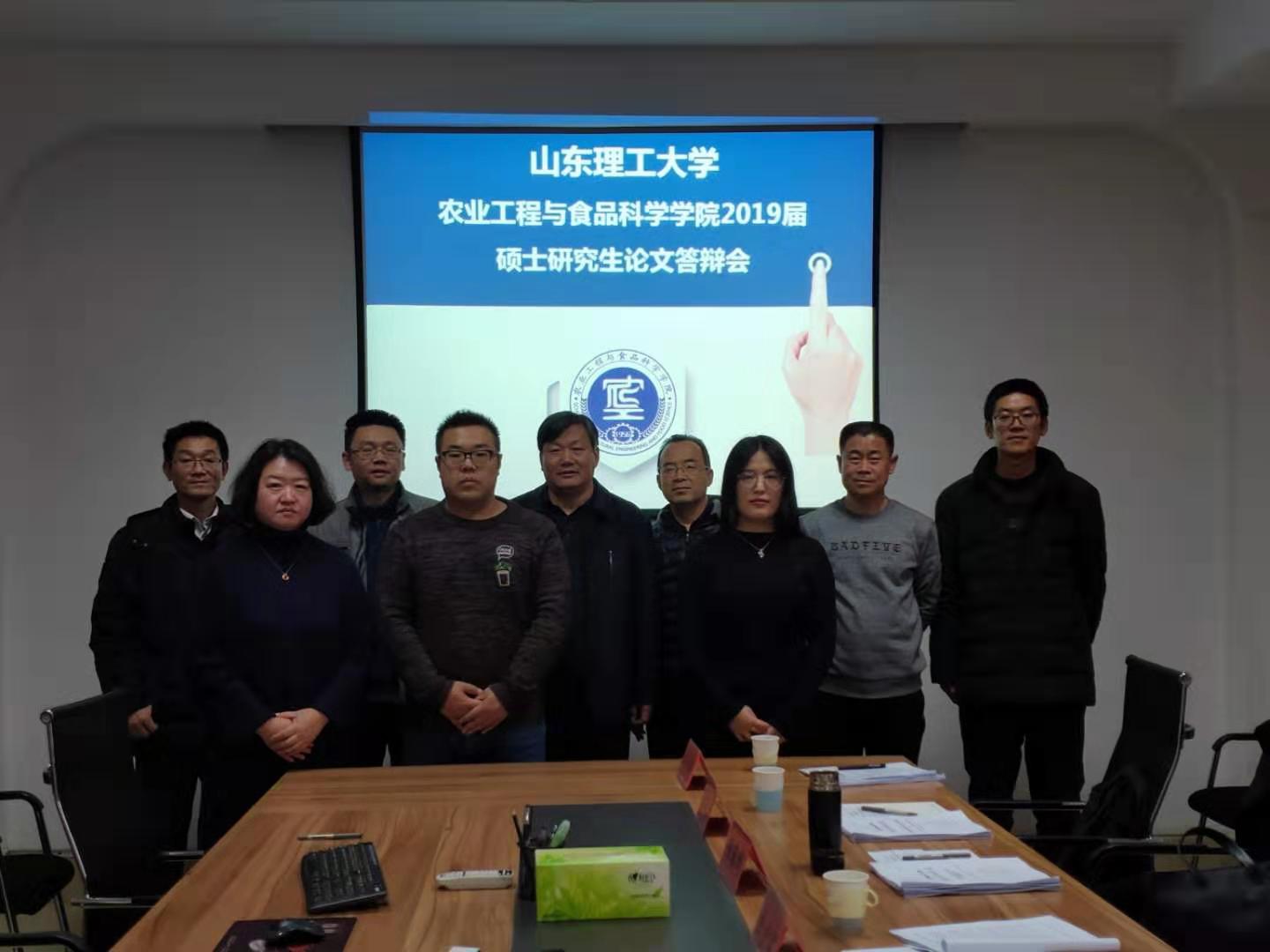 12月5日,我院2019届硕士研究生毕业论文答辩会在农工学院一楼教室举行。本次答辩委员会特邀山东玉兔食品有限公司高级工程师王新文、扳倒井集团高级工程师信春辉、淄博农技推广站研究员林玉柱以及齐鲁工业大学教授于滨担任答辩委员会委员。校研究生院贺光宗、学校督导葛敬民和农工学院部分师生参加此次答辩。