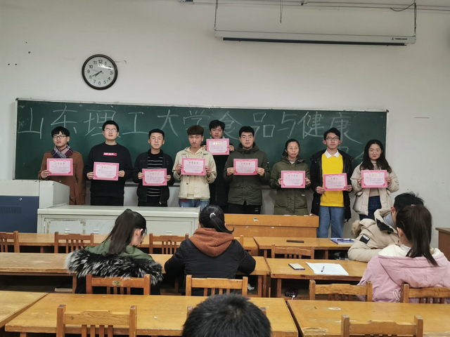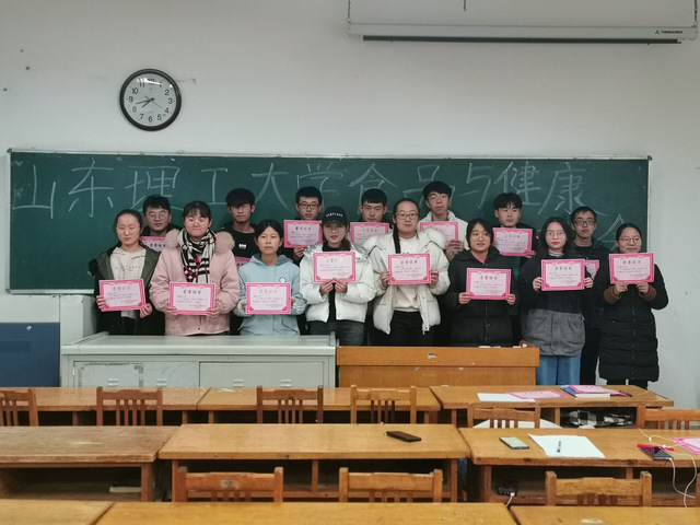 食品健康协会于12月9日晚上7点在12号教学楼113教室举行了光盘行动颁奖活动。本次活动由张铭慧会长主持,社团各部部长各部门干事以及获奖同学参加。
