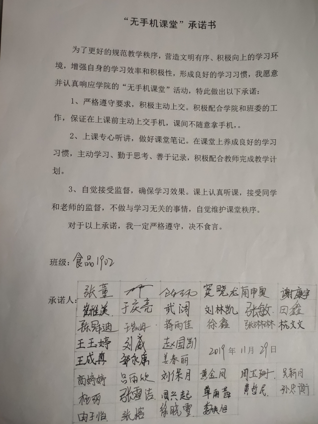 为减少学生对手机的依赖,切实改变部分学生沉迷手机等不良习惯,促进学生之间的学习和交流,树立良好的学风,本学期在全院学生中开展“拒做低头族,抬头望未来”——“无手机课堂”活动。此活动由我院学生工作办公室发起,学生会学习部具体开展,学院全体学生参与。