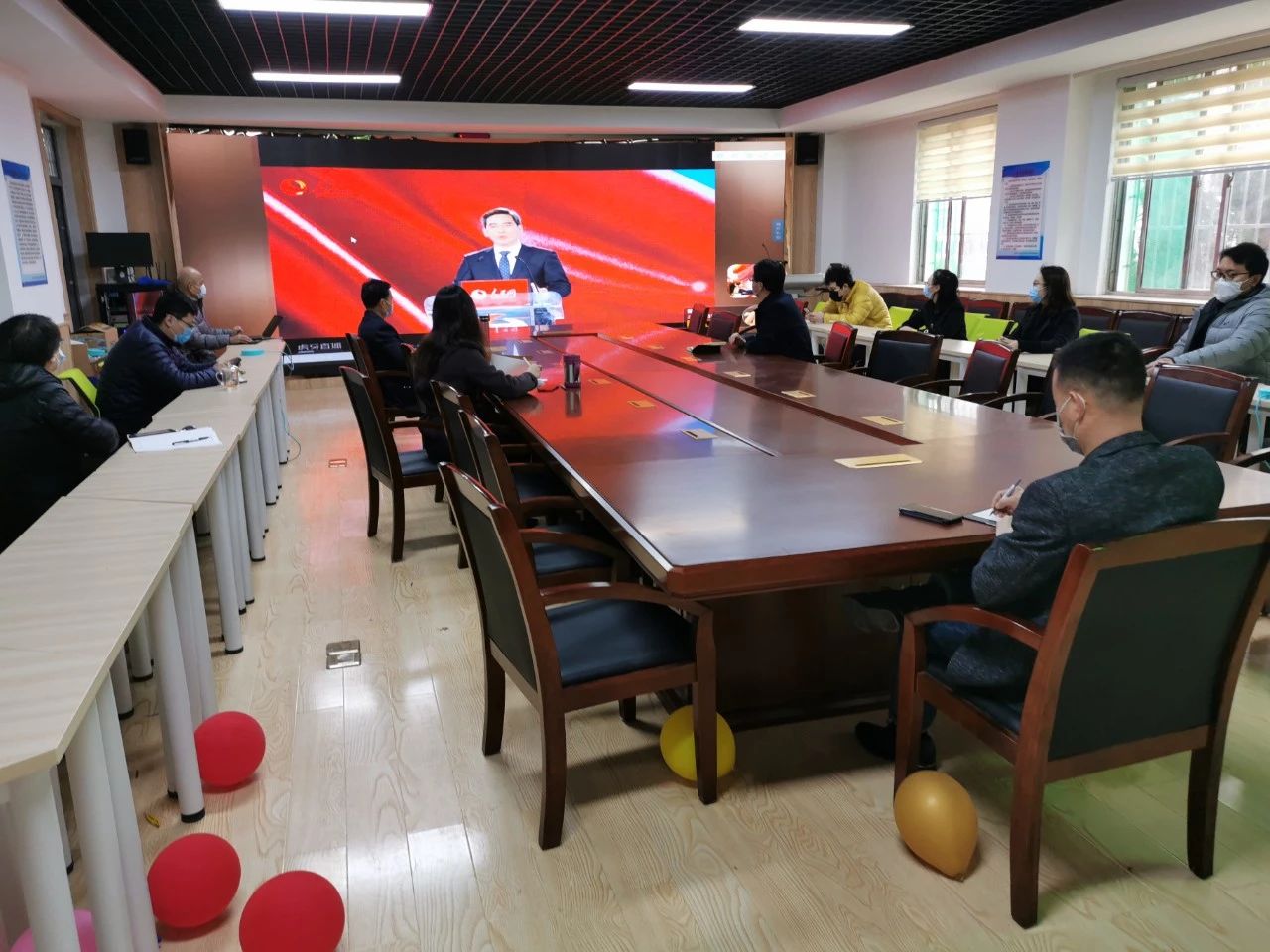 学院领导班子成员、辅导员集中在12号教学楼114观看