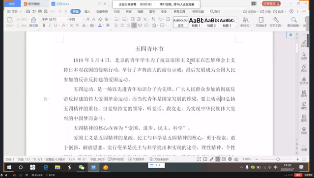 为深入贯彻学校党委、学院党总支对规范基层党支部开展主题党日活动的有关要求,我院各学生党支部依托线上交流平台,于5月7日下午开展双周四主题党日活动。本期主题党日活动,以“弘扬五四精神,担当时代大任”为主题,农机专业学生党支部、食品与工设专业学生党支部和研究生党支部积极组织开展党员学习与交流活动。