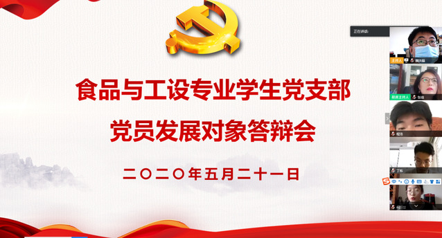 为深入考察学生党员发展对象的思想进步情况,5月21日、23日下午,我院农机专业学生党支部、食品与工设专业学生党支部和研究生党支部通过腾讯会议,分别举行2020年上半年党员发展对象线上答辩会。