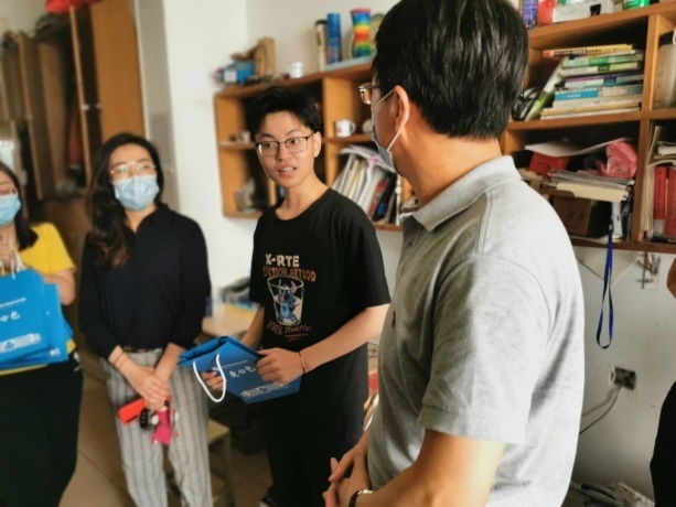 5月30日下午,学院党总支书记柳铎、副书记戴洁一行来到学生公寓楼,看望慰问返校学生,并为返校生送上学院爱心礼包。