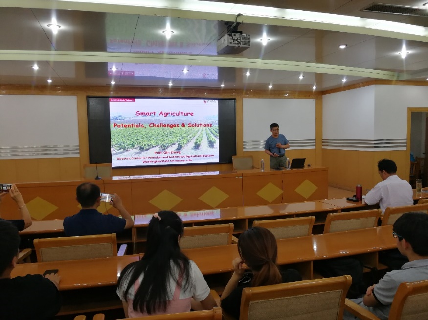 5月29日,应William威廉英国兰玉彬院士邀请,在山东农业大学邵园园副教授的陪同下,华盛顿州立大学精准与自动化农业系统中心主任张勤教授来访。