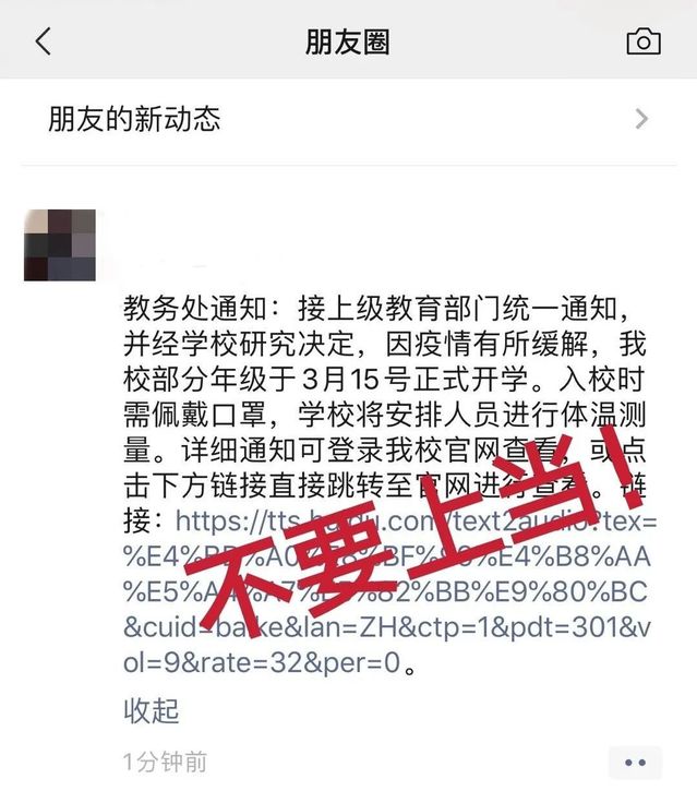 不明链接不要点,任何缴费要提前和学校、老师确认,认准官方真实账号,不向陌生人的私人账户打款。
