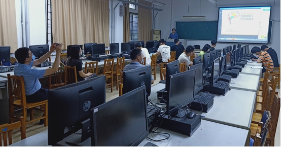 上午7:40易校长一行来到12号教学楼111机房,准备现场听取工业设计系邬瑞东老师的《设计心理学》,学院教学科夏连明科长向易校长一行简要汇报了疫情防控期间农工学院固定教室开设情况和学院保障教学正常运行的措施,易校长和邬老师交流了课程同时开展线上线下教学的准备情况和遇到的困难或问题。