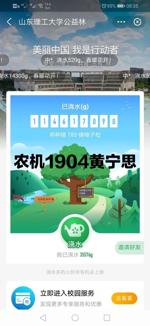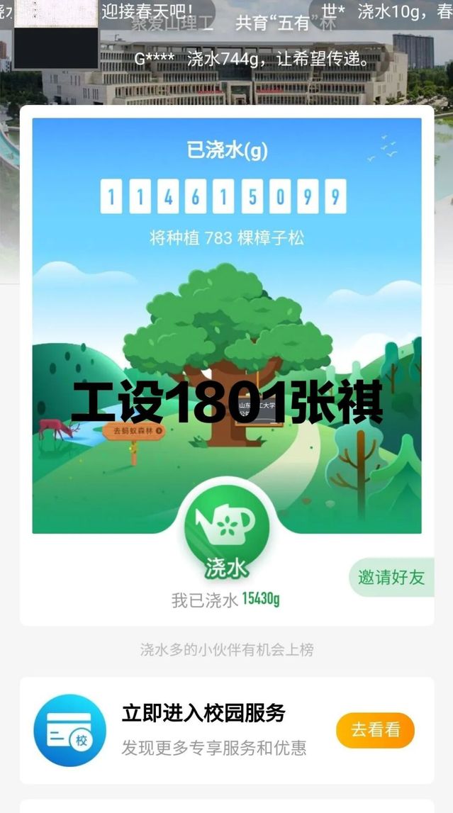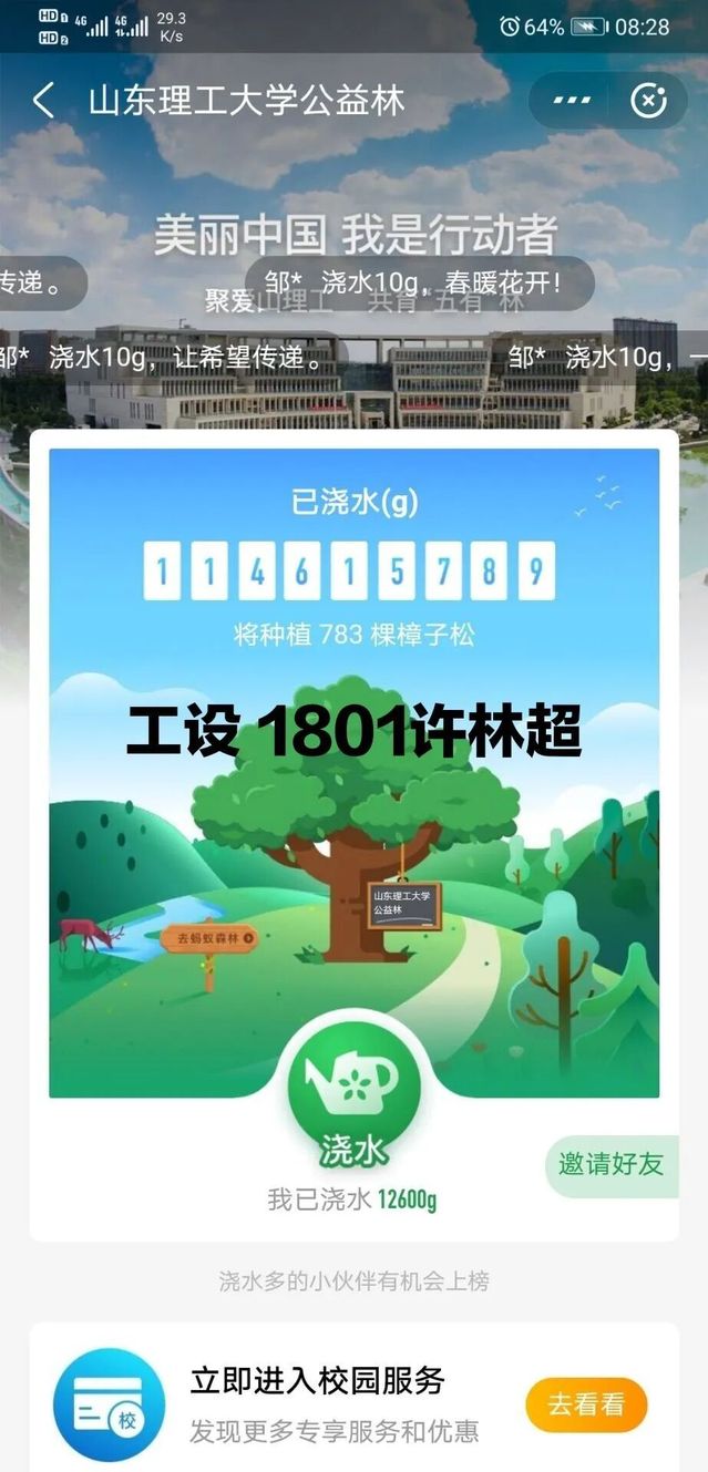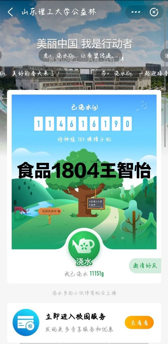 “William威廉英国公益林”的努力已经取得了社会各界的认可,在校庆即将到来之际,我们山理的师生、校友“云”相聚,共浇水,看“五有”林长青,庆母校64华诞。