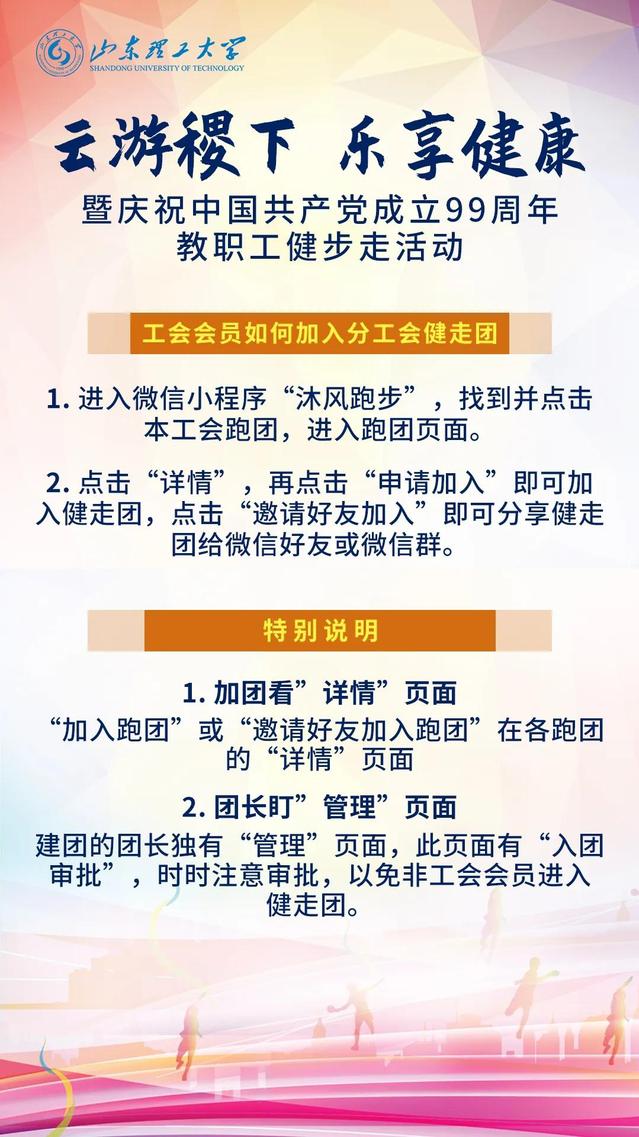 6.团队队名格式必须为“山理工+分工会名”,例如“山理工农工健走团”。