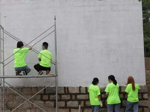 墙绘采点勾线工作的顺利进行是“兴岱崮农,赴沂助梦”实践队伍工作进入新阶段的显著体现。队内大学生利用所学专业知识,发挥聪明才智,投身志愿实践,为当地乡村振兴贡献了力量。