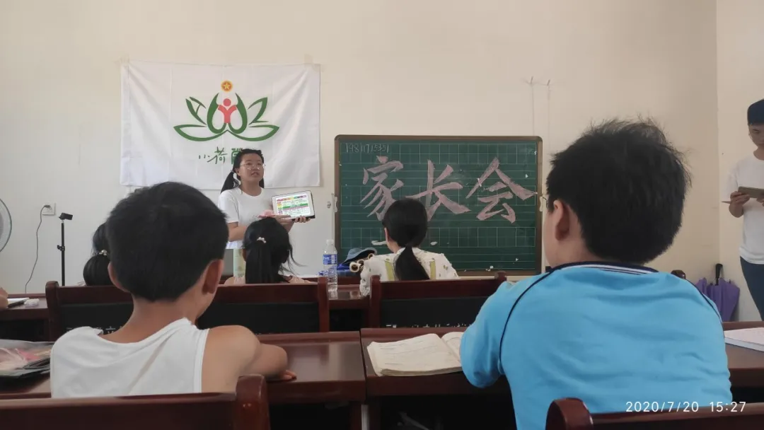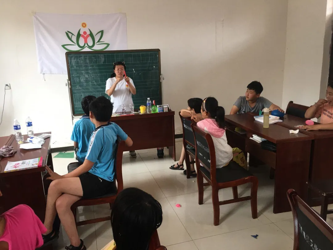 支教过程中,团队先同地方政府和学校取得深入交流与协商,在给家乡留守儿童带去新鲜课程内容、先进教育理念、学习方法的同时,注重对留守儿童美德的培养,才智的修养及心理建设。团队结合当地实际情况和自身专业特色设计了对应的课程,根据小荷学堂的要求,以疫情为基点,结合家长和当地联系人对课程的反馈,将课程类型分为科普类、专业类、实验探索类、疫情防控类、课外拓展类等,课程形式追求多样化、兴趣化,把理论知识与实践相结合,开阔学生的视野,拓展学生的思维能力;同时通过小组得分竞争的形式,调动学生们的积极性。在授课的过程中,通过调查问卷的形式了解家乡教育情况,尤其是留守儿童的心理、学习、生活现状。