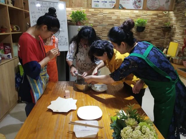为了更好的掌握前一天所学的膳食健康相关知识,将理论同实际相结合,实践团成员跟随营养师培训基地实操老师徐华开展动手制作营养餐活动。徐华首先向成员们介绍了日常生活中常见食用菌类的营养和对人体的益处并教给成员们如何制作蘑菇汤,据徐华介绍,食用菌是一种集高蛋白、无胆固醇、低脂肪、多氨基酸等良好特性于一体的食材,可以为人体提供丰富的营养物质。在蘑菇汤熬制的过程中,徐华又向成员们介绍了油炸大虾的做法,并教给成员们处理虾的一些技巧,在看完徐华的示范之后,成员们也都热情饱满的动手处理,利用实际操作来加深对这些技巧的印象。学习完营养餐的制作后,成员们与培训基地负责人田丽进行了深入的交流,田丽借此机会为成员们解答了一些日常生活中的饮食问题。
