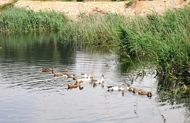 8月3日,线下实践团来到了苏庄河段,相比于大河村段,这里倒保留了更多原名胜河流原生特色,可以观察到成群结队的鸭子在水中嬉戏。在当地居民交谈中得知,由于近两年河道的治理河流水质得到了很大程度的改善,以前是看不到有鸭子经常在水面上的。言语中深切感受到村民们对于政府此项举措的称赞!