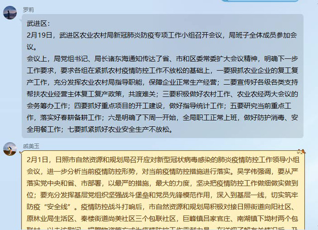 7月23日,在QQ群讨论各地区防疫措施以及在此次疫情中带给自己的感悟,通过实践团成员踊跃发言我们了解到各地区紧紧依靠党中央,从严落实党中央和省、市部署,以最严的措施,最大的力度,坚决把疫情防控工作做细做实做到位;充分发挥基层党组织坚强战斗堡垒和党员先锋模范作用,深入到基层一线,切实筑牢防疫“安全线”。通过党组织、志愿者、人民群众共同努力,将病毒的危害降到最低,保护生命安全,并有序完成复产复工、春耕播种。