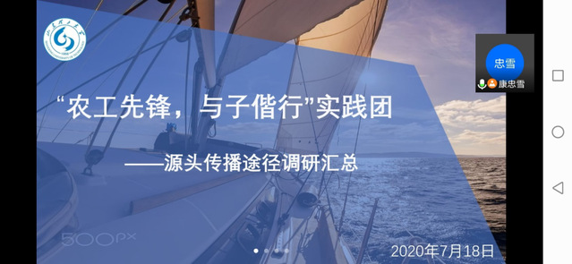 7月18日,实践团全体成员首次使用腾讯会议举行总结会议,会议内容主要是首日社会实践总结与培训。康忠雪首先将各位成员搜集资料进行整理汇总,并进行第二天的任务分配,强调社会实践有关内容以及注意事项;王雪主要针对新闻撰写与投稿为实践团成员讲解。