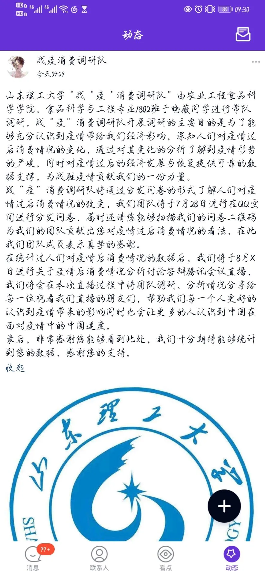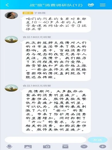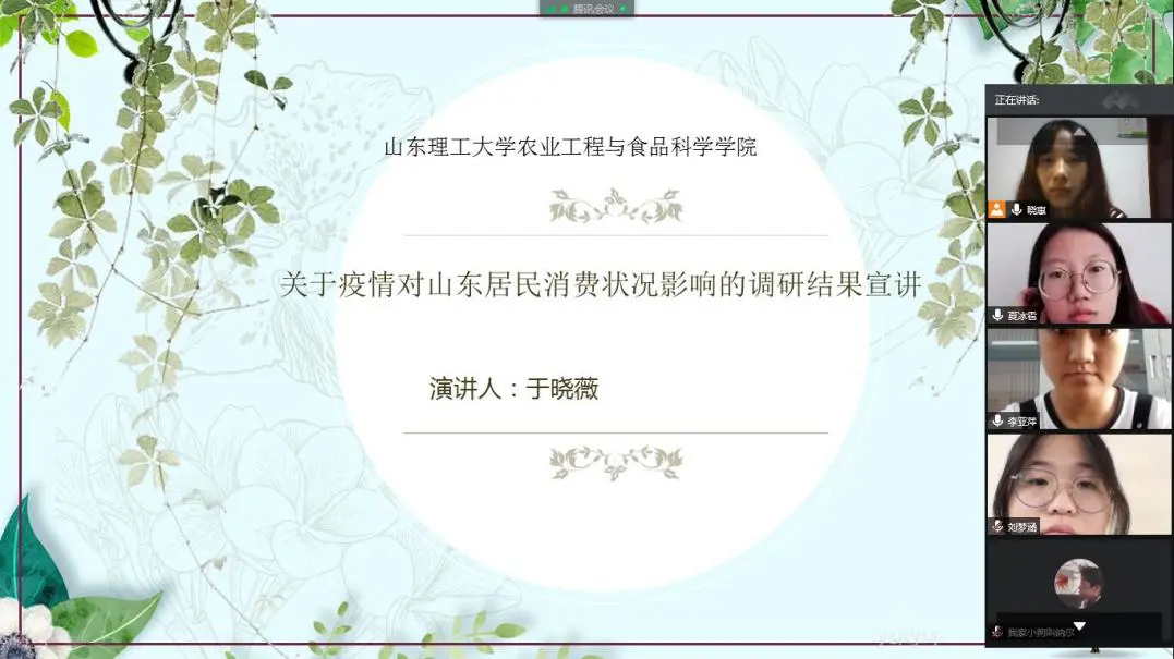 7月25日早上在腾讯会议开了线上社会实践动员大会,会上队长于晓薇同学在会中讲述了团队成员在接下来的几天中需要做什么。之后,实践团所有成员在各自的QQ空间里发布了介绍团队的说说。为了能够充分认识到疫情带给我们经济影响,深知人们对疫情过后消费情况的变化,通过对其中变化的分析了解到疫情形势的严峻,同时对疫情过后的经济发展于恢复提供可靠的数据支撑,为战胜疫情贡献我们的一份力量。
