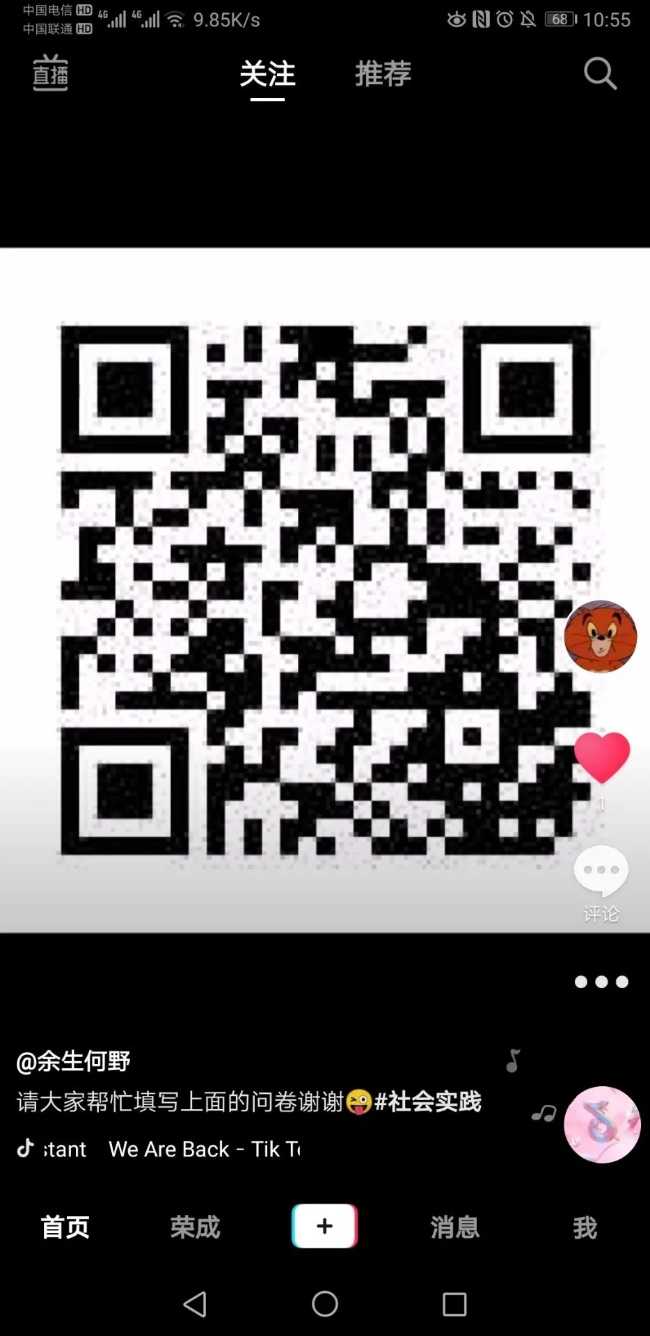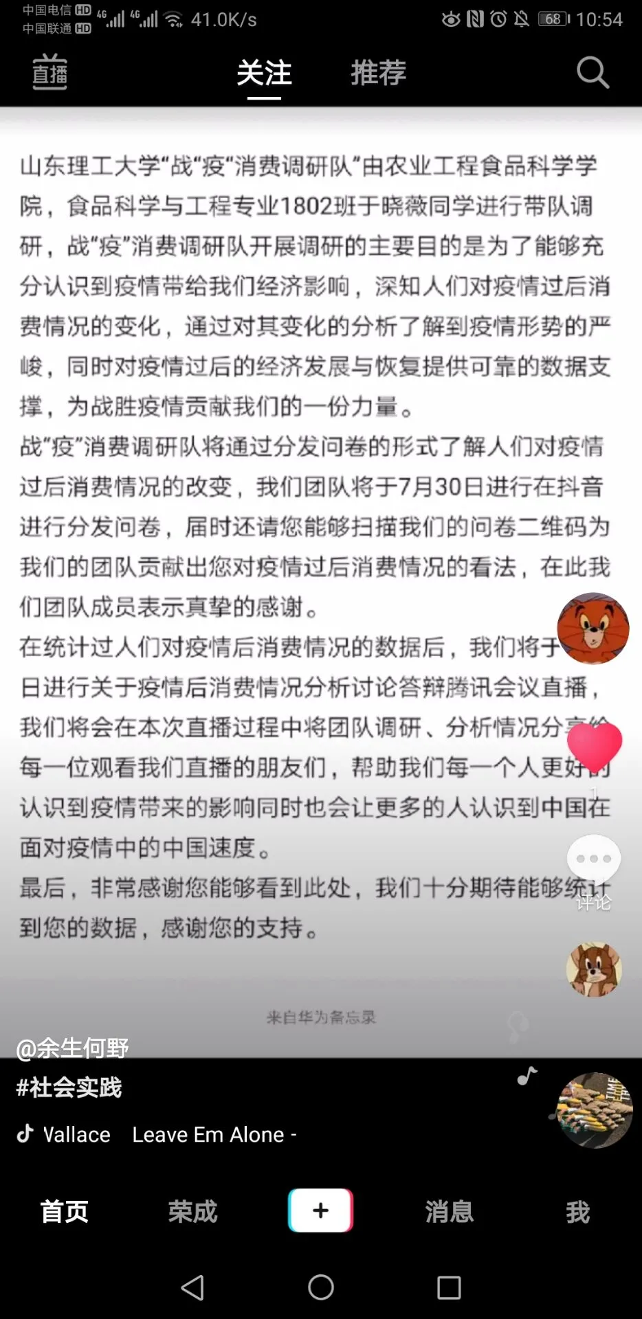 7月28日,是在抖音进行宣传的一天。在抖音都进行了相关文字的转发。下午,实践团成员在一起讨论第二天的问卷调查工作。经大家一致认为,首先第一站是由微信开启的。之后依次为QQ和抖音。