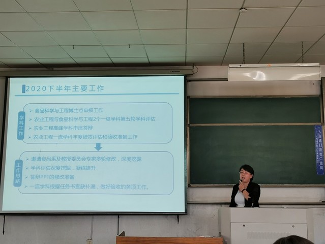 院长李志合就学院“十三五”任务目标完成情况、上半年工作指标完成情况进行了总结,提出存在的主要问题以及对学院各项工作的思考,着重对学院下半年的重点工作做了部署,他指出,要继续推进学院“一个目标、两个一切、三个愿望、四个突破”目标建设,扎实推进高层次人才引进、食品专业博士点、学科评估、专业工程论证、新上专业建设等工作,深化农业工程“一流学科”建设,坚决完成各项学院重点工作任务,积极助推学院各项工作顺利开展。