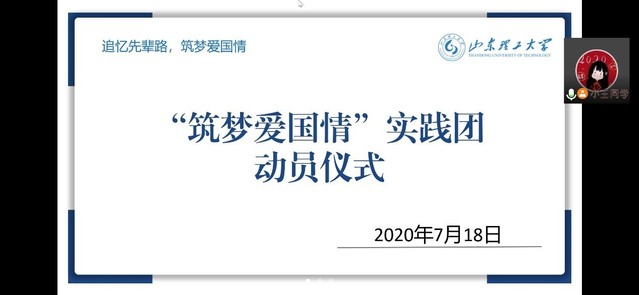 为确保暑期社会实践的顺利进行,提高实践团安全意识和新闻撰写能力,718日下午,“筑梦爱国情”实践团通过腾讯会议举行线上动员仪式,此次会议由实践团队长王雪主持,实践团全体成员参加。