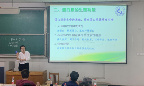 随后比赛正式开始,青年教师的课件制作精良,授课内容丰富,声音洪亮,自信满满。在比赛中,鹿芳媛老师引入外卖的例子阐述了自动机械的工作原理;董爽老师以日常饮食为切入点,结合木板理论讲解了蛋白质的互补原理;贾鹏老师更是以工业机器人为导入点,通过拆解图吸引学生学习工程制图这门课程;其他老师也在各自的课程中或通过生活引入,或通过数字资源等丰富教学内容,真是八仙过海,各显神通。