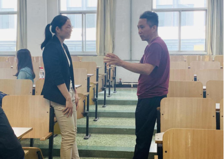 赛后,青年教师也紧抓机会,与评委老师进行授课的探讨。