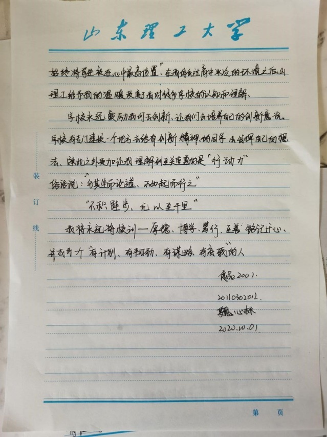 山理工,我带着我的梦想奔向你,我相信你也一定会给我一个大大的拥抱。