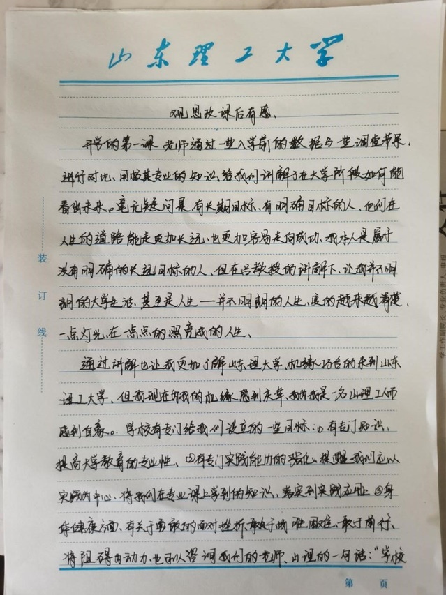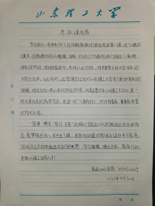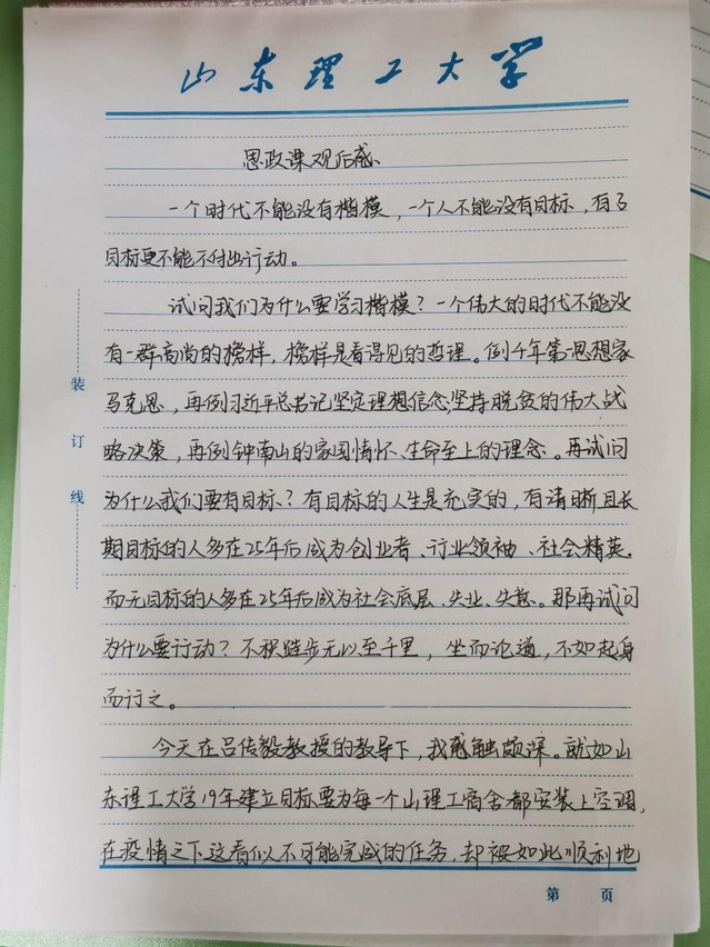 学校始终鼓励我们去创新,让我们去培养自己的创新意识。学校也专门建设一个地方,给有创新精神的同学去发挥自己的想法。除此之外,更加让我理解到至关重要的是行动力。俗话说,与其坐而论道,不如起而行之;不积跬步,无以至千里。行动力能决定一个人,决定一个人的方向。我们的校训:“厚德”“博学”“笃行”“至善”将永远铭记于心,也感谢这次思政课,让我决定成为了一个有计划、有韧性、有谋略、有底线的人。