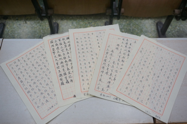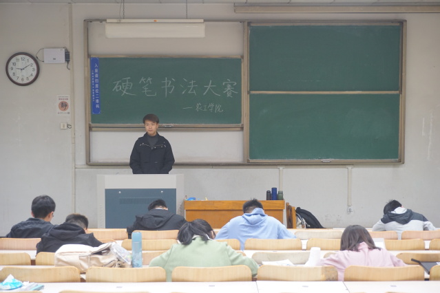 最后,主持人将田字格统一收齐,并稍后对作品进行打分,选出学院前五名继续代表学院参加全校硬笔书法比赛。