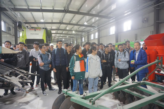 根据疫情防控要求,此次活动分三组错时进行。进入实验大棚前,由各班带班学长组织队伍并强调注意事项。进入第一个实验大棚后,牛国栋开始对同学们讲解像玉米播种机、小麦收割机等一系列大型机器的由来、工作原理及其中所包含的先进技术。牛国栋指出,目前此实验大棚里的一些机器如大型的小麦收割机代表着目前此领域的最高水平,希望同学们能主动学习、了解专业知识和发展方向,积极参与学院老师科研项目,为专业的发展贡献自己的力量。