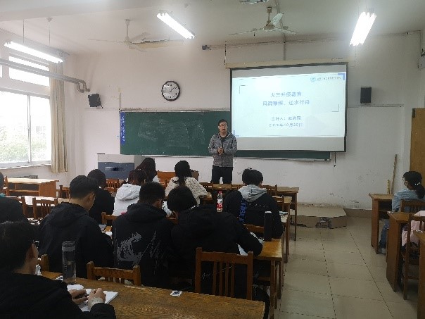 大二年级,主要进行“专业教育”,培育优良学风。辅导员苏新勇、郑群帮助学生明确学业差距,调整学习方法,积极应对课程体系变化。分专业梳理各级各类双创赛事目录,培养学生专业认同感及创优争先意识,鼓励学生在完成学业基础的同时,走进实验室,接触教师课题,培养多面技能。