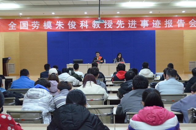 为弘扬爱岗敬业、争创一流,艰苦奋斗、勇于创新、淡泊名利、甘于奉献的劳模精神,培养学生吃苦耐劳、创先争优的品质,12月1日,我院于图书馆负一层报告厅举行全国劳模先进事迹报告会,我校特聘教授、淄博禾丰种业科技有限公司董事长兼总经理朱俊科担任主讲人。学院党总支副书记戴洁主持,学院部分辅导员、农业机械化及其自动化专业学生参会。